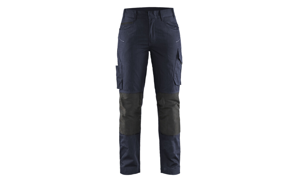 Diese Hose ist in Bezug auf Komfort, Anwendung und Aussehen funktionell. Das leichte Ripstop Material ist strapazierfähig und robust mit guter Reißfestigkeit. Die elastische Taille und die Stretch-Einsätze an der Wade und an der Innenseite der Oberschenkel bieten hervorragende Bewegungsfreiheit. Die Kniepolstertasche ist mit CORDURA® Stretch verstärkt. Die Hose ist abriebfest und hat diskrete Reflexstreifen, eine Handytasche aus Mesh und Taschen für Messer und Zollstock. Die Hosenbeine können am Saum verlängert werden.