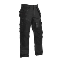 Zwei aus CORDURA® verstärkte Nageltaschen, die in den Vordertaschen verstaut werden können. Schraubendreherschlaufe. Zwei Gesäßtaschen mit Balg. Hammerschlaufe. Hosenschlitz mit solidem Metallreißverschluss. Verstärkte Zollstocktasche mit Stiftefach und Messerhalter. Beintaschen mit Handytasche aus wasserabweisendem Material. In zwei Größen einsetzbare Kniepolstertaschen aus CORDURA®. ID-Ausweistasche, die in die Beintasche gesteckt werden kann. Schlüsselschlaufe. Hosensaum mit Zugband verstellbar.