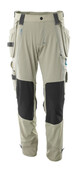 Hat ein wasserabweisendes Finish. Vier-Wege-Stretchstoff mit geringem Gewicht und hoher Strapazierfähigkeit. Der Stoff ist fast nicht auf der Haut zu spüren, da die Taschen im Design integriert sind. Zweifache Kappnähte an den Beinen und im Schritt. Niedrige Taille. Hosenbeine sind ergonomisch geformt. Gürtelschlaufen. Hosenschlitz mit Reißverschluss. Abnehmbare Hängetaschen aus strapazierfähigem CORDURA®-Gewebe - das Vorderteil der rechten Hängetasche hat Verstärkungen aus durchstichfestem Kevlar® im Boden. Vordertaschen.Gesäßtaschen. Werkzeugschlaufen an beiden Seiten des Bundes. Schenkeltasche mit Handytasche mit Magnetverschluss und integriertem ID-Kartenhalter. ID-Kartenhalter ist abnehmbar. Zollstocktasche aus CORDURA® Gewebe mit extra Taschen. Strapazierfähige und durchstichfeste Knietaschen aus CORDURA®/Kevlar®/Dyneema® sind elastisch und mit Ventilation. Druckknopfregulierung an den Fußgelenken. Reflexeffekte. Wir empfehlen den MASCOT® Waterloo, MASCOT® Likasi und 20118-915 Knieschutz zu diesem Modell.