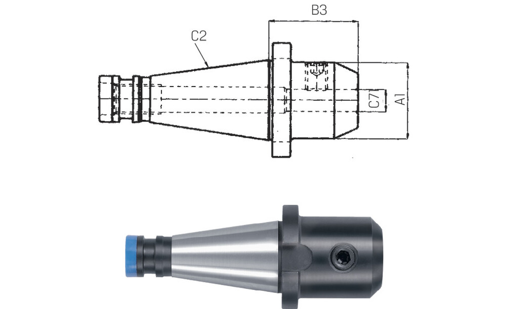 Zur Aufnahme von Werkzeugen (Fräsern) mit zylindrischem Schaft und seitlicher Spannfläche nach DIN 1835 (System Weldon).