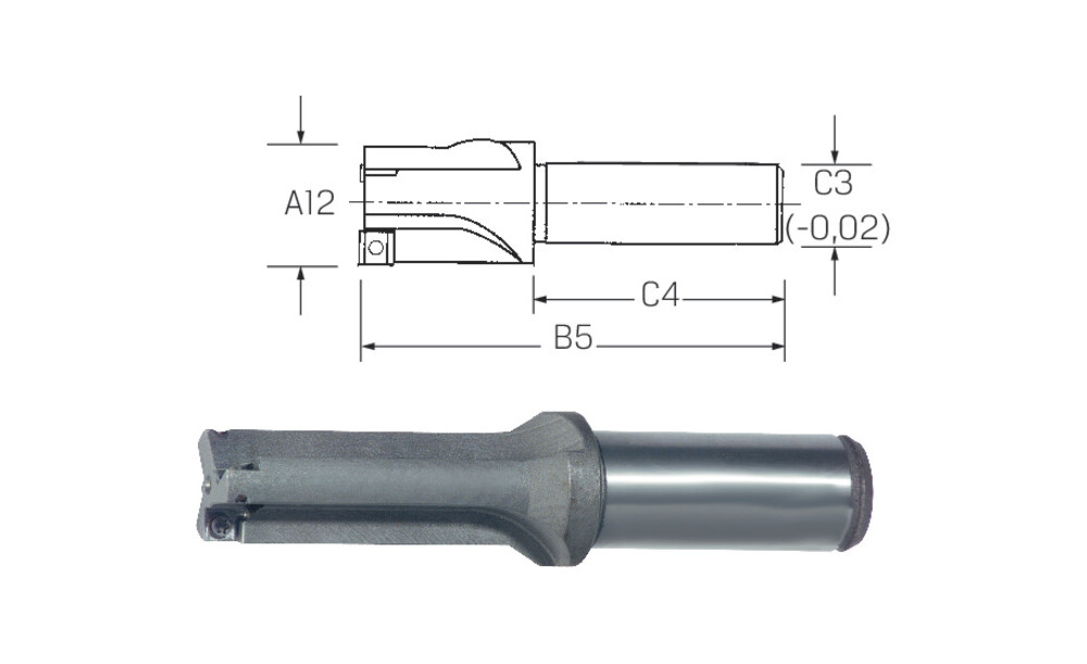 - enge Bohrungstoleranzen (IT9-11) und ratterfreie Bearbeitung durch geschliffene Wendeschneidplatten mit Führungsfasen
