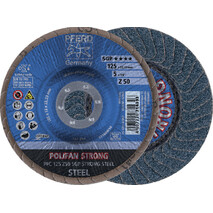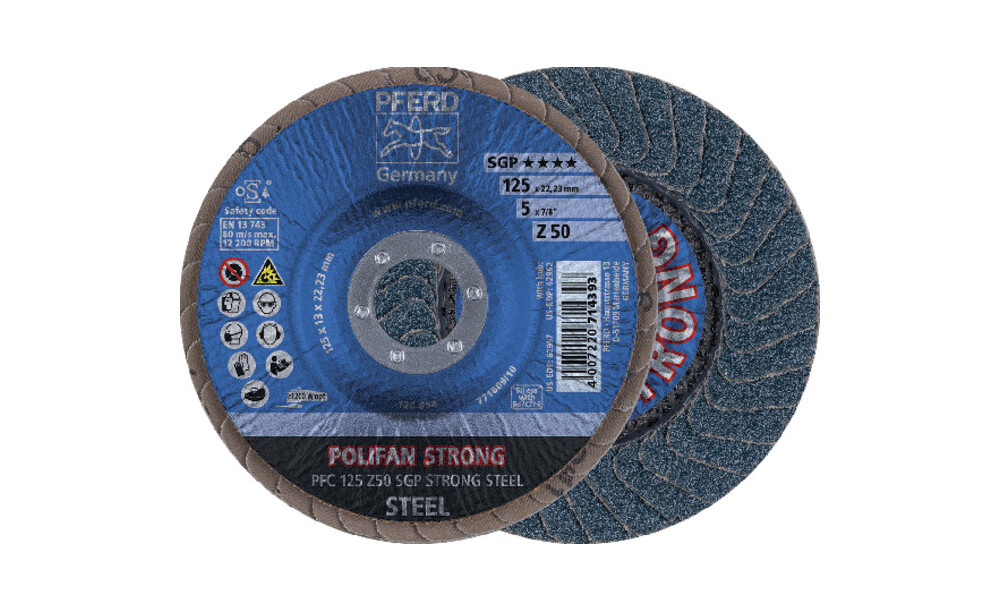 - Schleifmittel, Lamellen- und Tragtellerform abgestimmt für den Einsatz mit leistungsstarken Antrieben