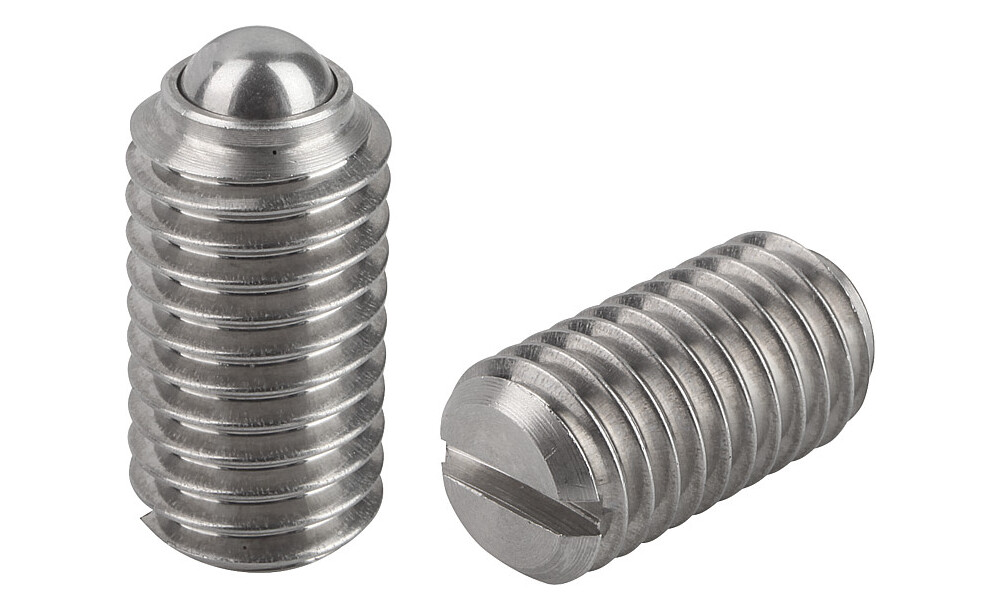 FEDERNDES DRUCKSTÜCK VERSTÄRKTE FEDERKRAFT D=M08 L=16, EDELSTAHL, KOMP:KUGEL AUS EDELSTAHL