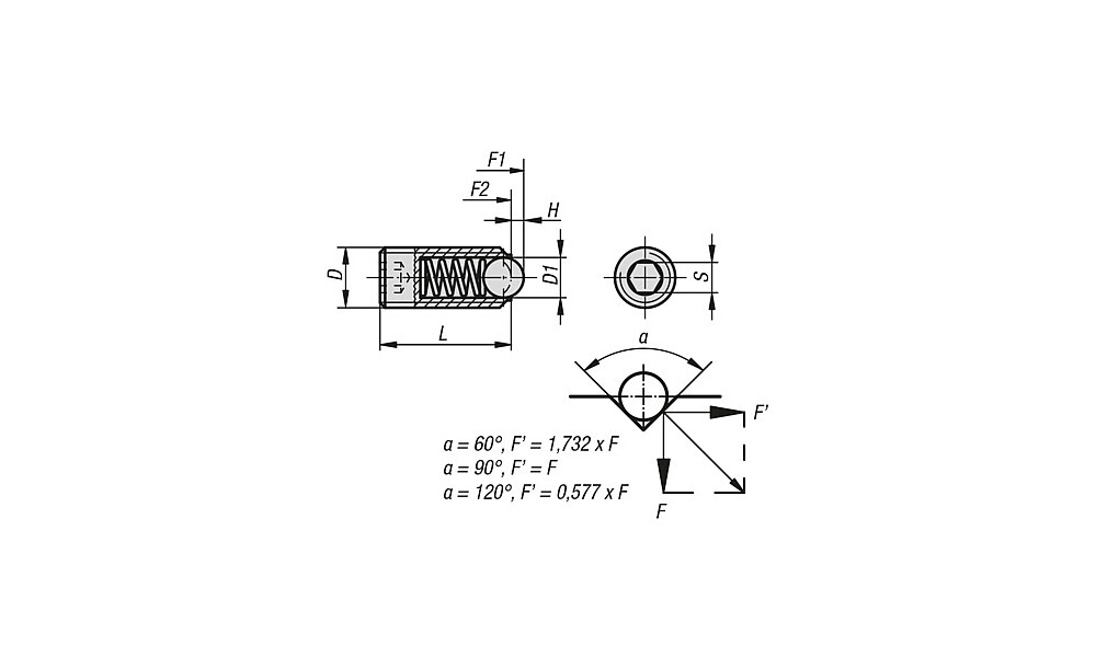 K0316 Federnde Druckstücke mit Innensechskant und Kugel, Edelstahl