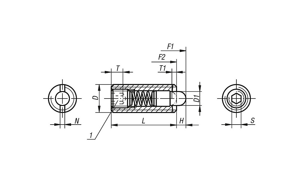 K0317 Federnde Druckstücke mit Innensechskant und Druckstift, Stahl