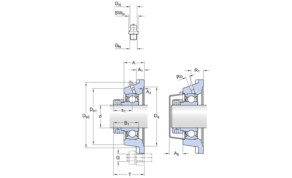 Y-Flanschlagereinheiten mit Gehäuse aus Grauguss sind über einen Schmiernippel im Gehäuse nachschmierbar. Dies macht sie besonders geeignet für Lagerungen, die