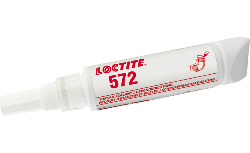 Zu den VariantenLOCTITE 572 ist eine weiße bis altweiße, mittelfeste Gewindedichtung auf Methacrylatbasis für Rohrgewinde und Anschlussstücke aus Metall. Das Produkt eignet sich für Grobgewinde und erzielt ein Losbrechmoment von 7 Nm. Es ist langsam härtend, so können Anschlüsse nachjustiert werden. Es kann für Gewinde bis M80 eingesetzt werden und ist thixotrop, um das Abwandern nach der Auftragung zu verringern.