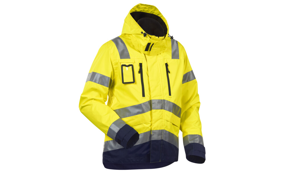 Wind- und wasserabweisendes Aussenmaterial. Vordertaschen mit wasserdichtem Reißverschluss. Atmungsaktiv. Zwei Brusttaschen mit wasserfestem Reißverschluss. Zwei verdeckte Fronttaschen. Justierbares Taillenband und Ärmelbündchen. Abnehmbare Kapuze. Mit Netz-Innenfutter. Innentasche und Handytasche. Ausweistasche. Leuchtfarben, 50 mm breite Reflexband. EN 471 / EN 20471 XS-S Klasse 2, M-5XL Klasse 3.
