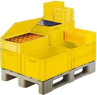 Transport-Stapelkasten LA-KA-PE, B300xT200xH145 mm gelb, geschlossen ohne Griffloch LA-KA-PE