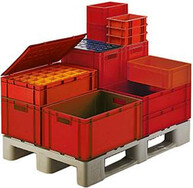 Transport-Stapelkasten LA-KA-PE, B300xT200xH145 mm rot, geschlossen ohne Griffloch LA-KA-PE