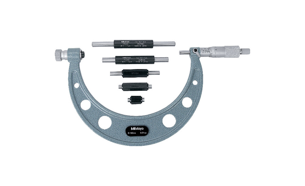 - Messspindel bis 300 mm Ø 6,35 mm, über 300 mm Ø 8 mm, Steigung 0,5 mm, mit Klemmeinrichtung