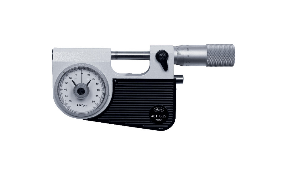 - AusführungStahlbügel mit Wärmeschutz, Messspindel Ø 7,5 mm aus nicht rostendem Stahl, ganz gehärtet und geschliffen, feststellbar