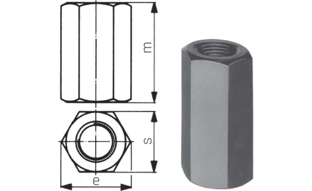 - die Verlängerungsmutter Nr. 6334 dient als Verbindungselement zwischen DIN 787 (Schraube für T-Nute) sowie DIN 6379 (Stiftschraube) und ist nicht durchschraubbar