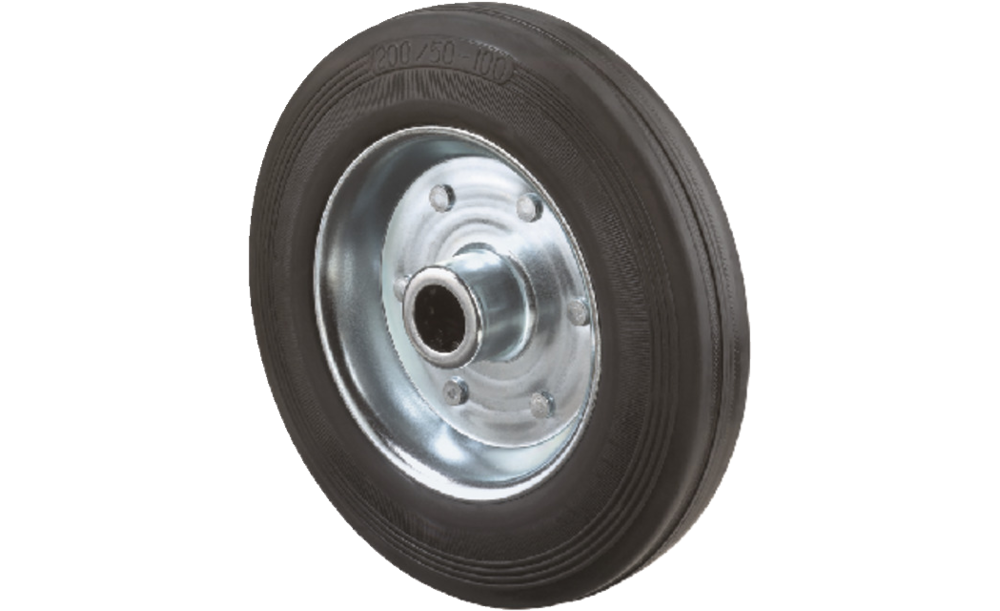 Gummirad BS ROLLEN, 200mm B55.200 schwarz,Radk.verzinkt,RL BS ROLLEN