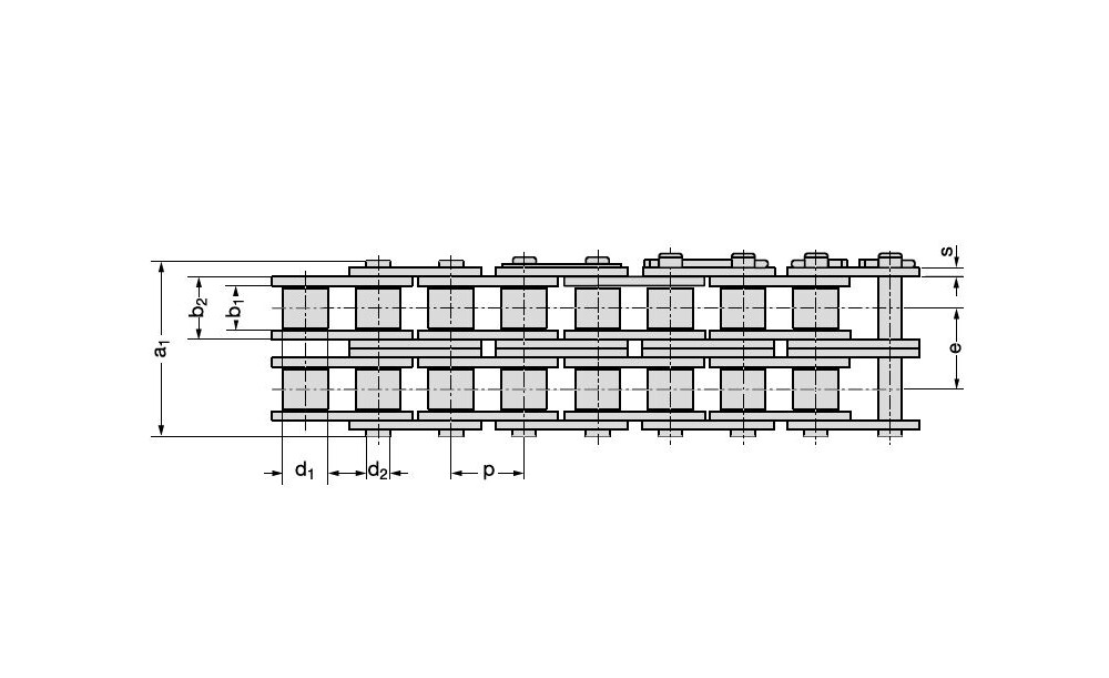 REXNORD Zweifach-Rollenketten mit geraden Laschen DIN 8187/DIN 8188