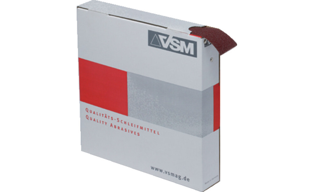 dicht gewebtes Baumwollgewebe mit gleichmäßiger Streuung des kunstharzgebundenem Normalkorund, Gewebe braun, für extrem hohe Beanspruchung, besonders geschmeidig, ölbeständig, mit sehr guter Kornhaftung, hoher Schleifleistung und langer Standzeit, mit integriertem Abreißmesser