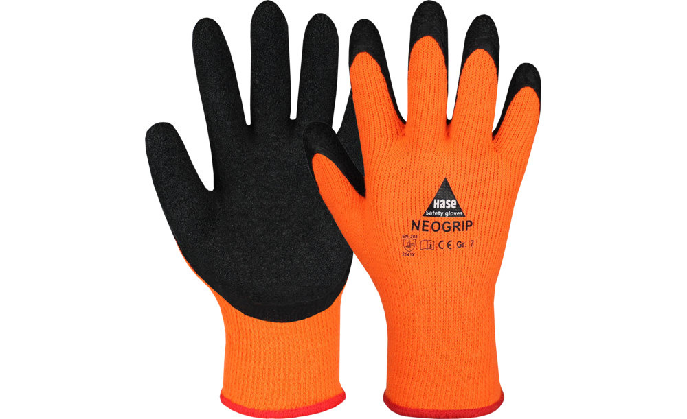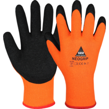 Zu den VariantenMontagehandschuh aus Polyacrylstrick mit schrumpfgerauter Latex Beschichtung an Handinnenfläche und Fingerkuppen