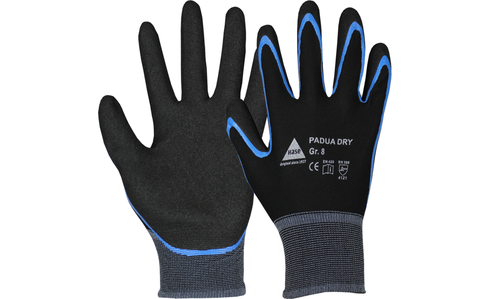 Montagehandschuh aus Nylonfeinstrick mit hohem Tragekomfort, Nitril Beschichtung und Nitrilschaum Beschichtung mit Sandyfinish an Handinnenfläche und Fingerkuppen, OEKO-TEX®