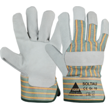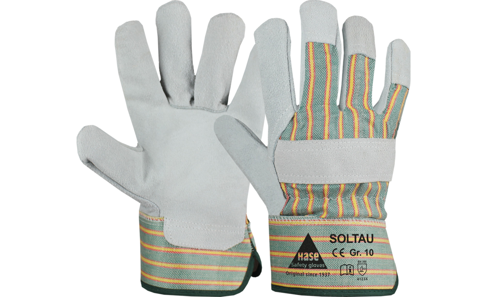 Zu den VariantenArbeitshandschuh aus Spaltleder, Doppelnähten, gummierte Stulpe, Innenhandfutter