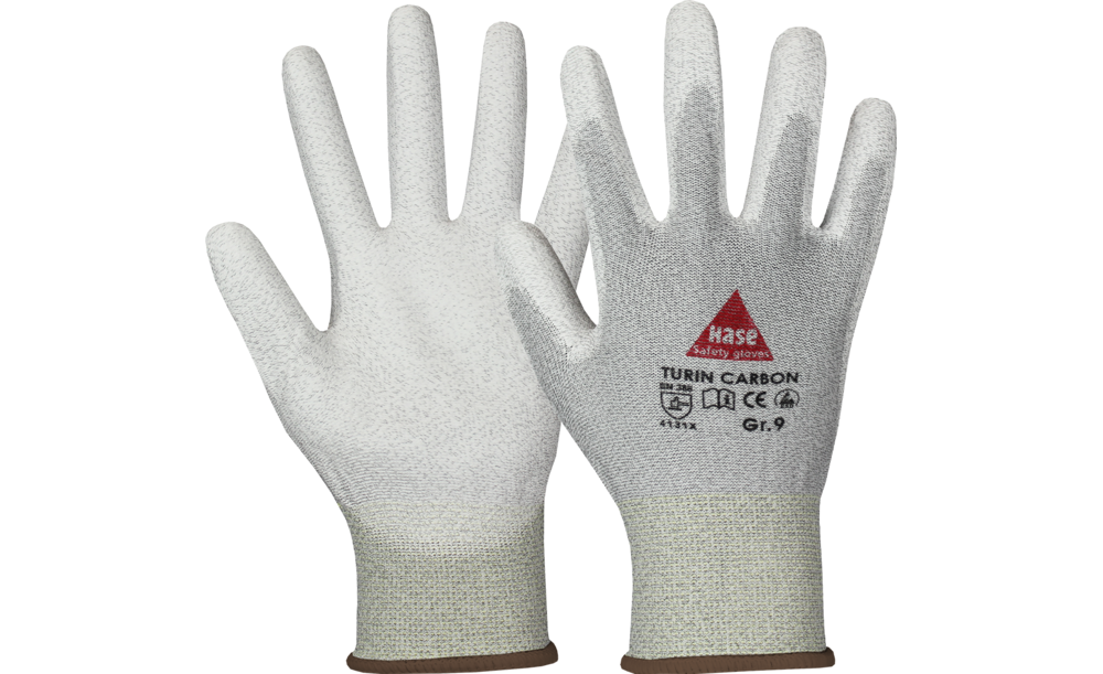 Antistatischer Montagehandschuh aus Nylon-/Carbonfeinstrick mit hohem Tragekomfort, PU Beschichtung an Handinnenfläche und Fingerkuppen