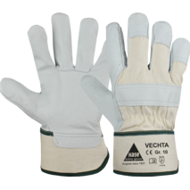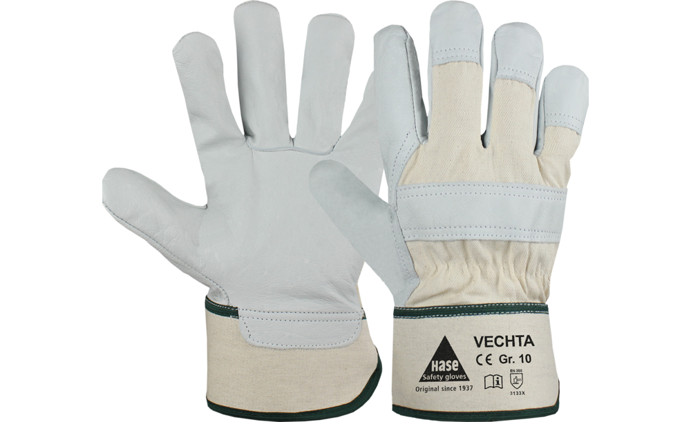 Zu den VariantenArbeitshandschuh aus Narbenleder, Doppelnähten, gummierte Stulpe, Innenhandfutter