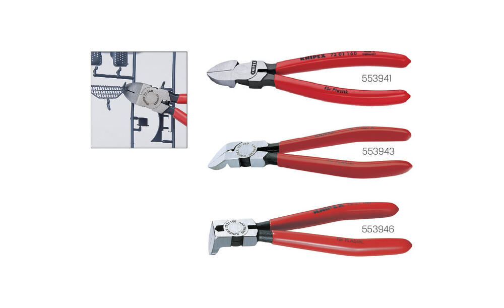 - zum glatten Abschneiden von Angüssen an Kunststoffteilen oder anderen weichen Werkstoffen wie Blei (nicht für andere Metalle geeignet)