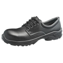 Klassischer Sicherheitsschuh mit leichtem Aluminiumschutz im Zehenbereich. Das Obermaterial besteht aus verschleißfestem und wasserabweisendem PU-Leder. Schnürsenkel. Die elastische Sohle dämpft die Übertragung von Stößen auf Füße und Rücken und sorgt so für ein längeres Wohlbefinden. Die anatomisch geformte ganzflächige Einlegesohle erhöht den Tragekomfort zusätzlich. ESD.