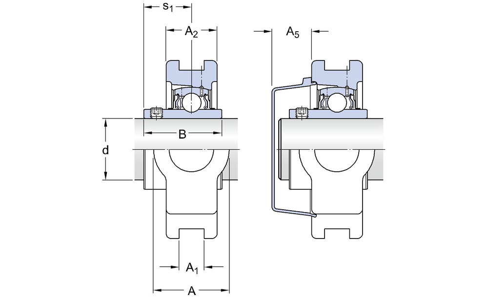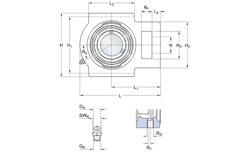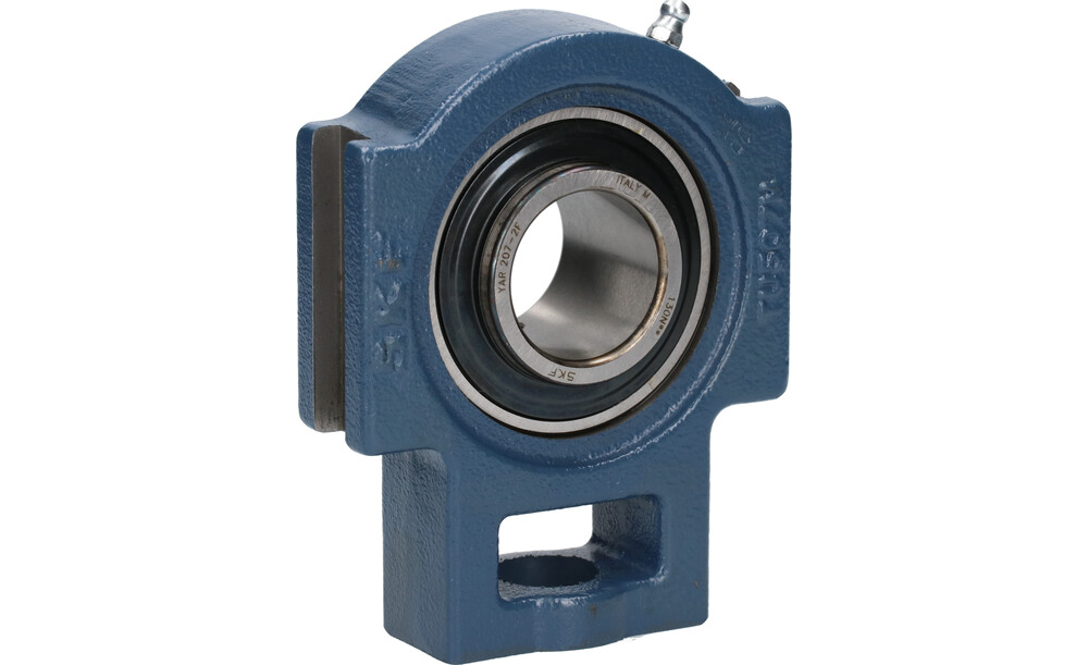 Die SKF Y-Spannlagerkopfeinheiten bestehen aus einem Spannlagergehäuse aus Grauguss und einem darin integrierten Y-Lager. Diese Lagereinheiten kommen hauptsächlich in Spannvorrichtungen, z. B. von Bandanlagen, zum Einsatz und werden dort über einen Spannbolzen in einem Spannrahmen angeordnet. Die SKF Y-Spannlagerkopfeinheiten sind über einen Schmiernippel im Gehäuse nachschmierbar. Die Befestigung der Lagereinheiten kann wahlweise erfolgen über