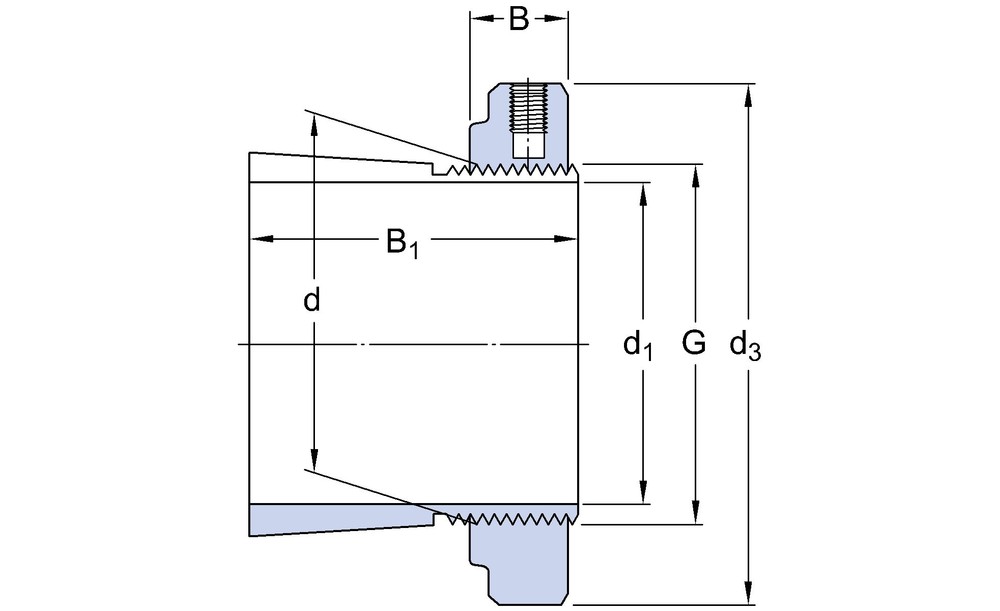 Zu den VariantenSpannhülsen sind die am häufigsten verwendeten Befestigungselemente für Wälzlager mit kegeliger Bohrung auf zylindrischem Sitz. Sie ermöglichen Montagen sowohl auf glatten wie auf abgesetzten Wellen und sind dabei einfach zu montieren. Eine zusätzliche Sicherung auf der Welle ist mit Spannhülsen nicht nötig.
