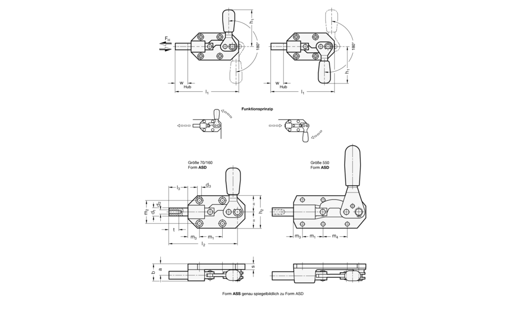 Schubstangenspanner GN 844 zeichnen sich durch eine sehr niedrige Bauhöhe in jeder Spannhebel-Stellung aus. Sie können aufgrund ihres massiven, starren Grundkörpers für sehr hohe Haltekräfte eingesetzt werden.