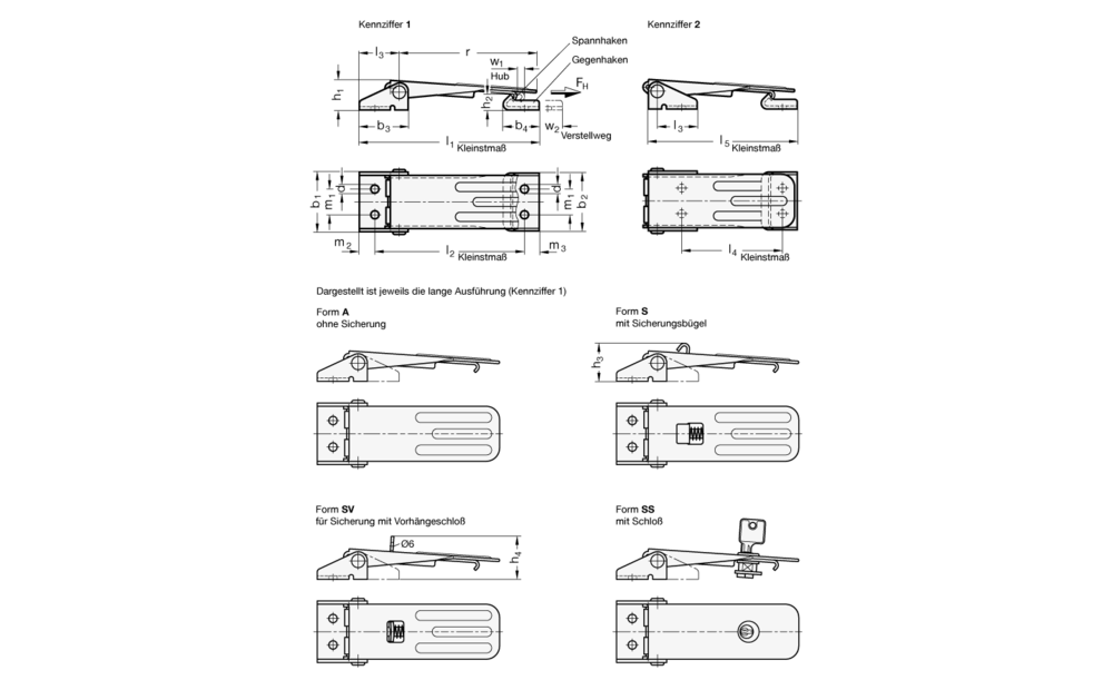 In der Standardausführung haben die Spannverschlüsse der Formen SS