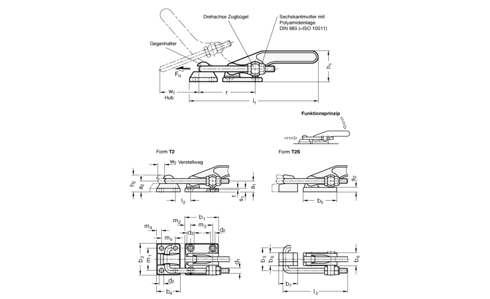 Zu den VariantenVerschluss-Spanner GN 852 stellen eine schwere, massive Ausführung dar, welche für sehr hohe Haltekräfte eingesetzt werden, wie sie z.B. bei Schäumformen auftreten.
