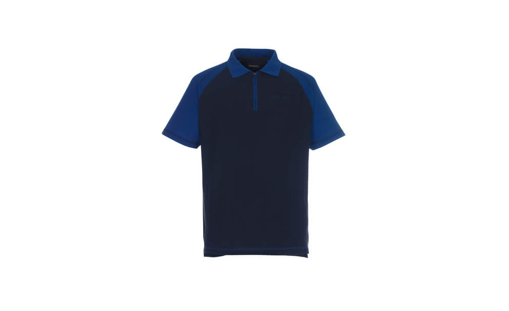 Zweifarbig. Gekämmte Baumwolle. Rippenbündchen am Kragen. Reißverschluss am Hals. Brusttasche. Schlitze an den Seiten. Rücken ist verlängert. Kontrastnähte. Nackenband.