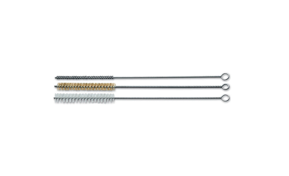 - verzinkter Drehdraht mit einfacher Besatzspirale aus gewelltem Stahl-, Messingdraht oder aus Nylonborsten