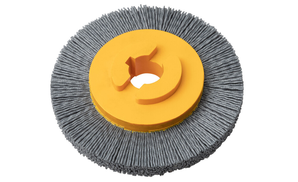 ATB®-Rundbürste mit sehr dichtem abrasiven Nylonborstenbesatz und hoher Rundlaufgenauigkeit für den prozesssicheren Einsatz und hoher Standzeit.