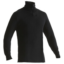 Verlängerter Rücken. Polo-Form mit Kragenreißverschluss. Langarm, mit elastischen Bündchen.