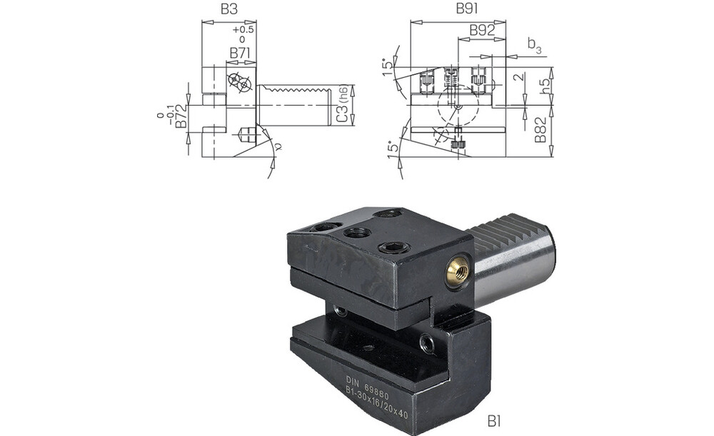 Werkzeughalter PRETEC, DIN69880 Vierkant-Queraufnahme radial rechts kurz Form B1