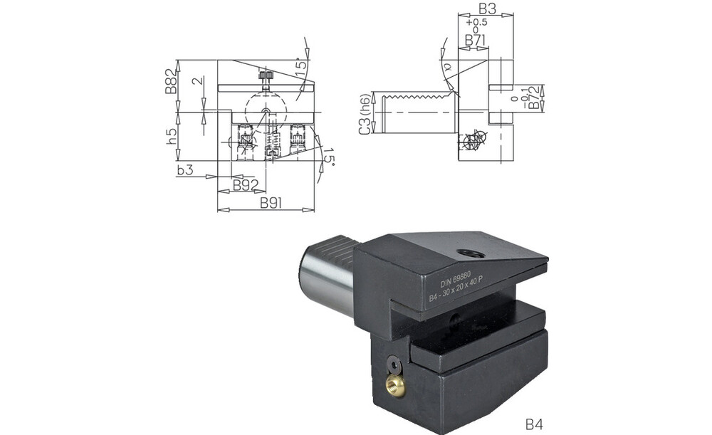 233150 PRETEC, DIN 69880 Vierkant-Queraufnahme rad. Überkopf L kurz Form B4