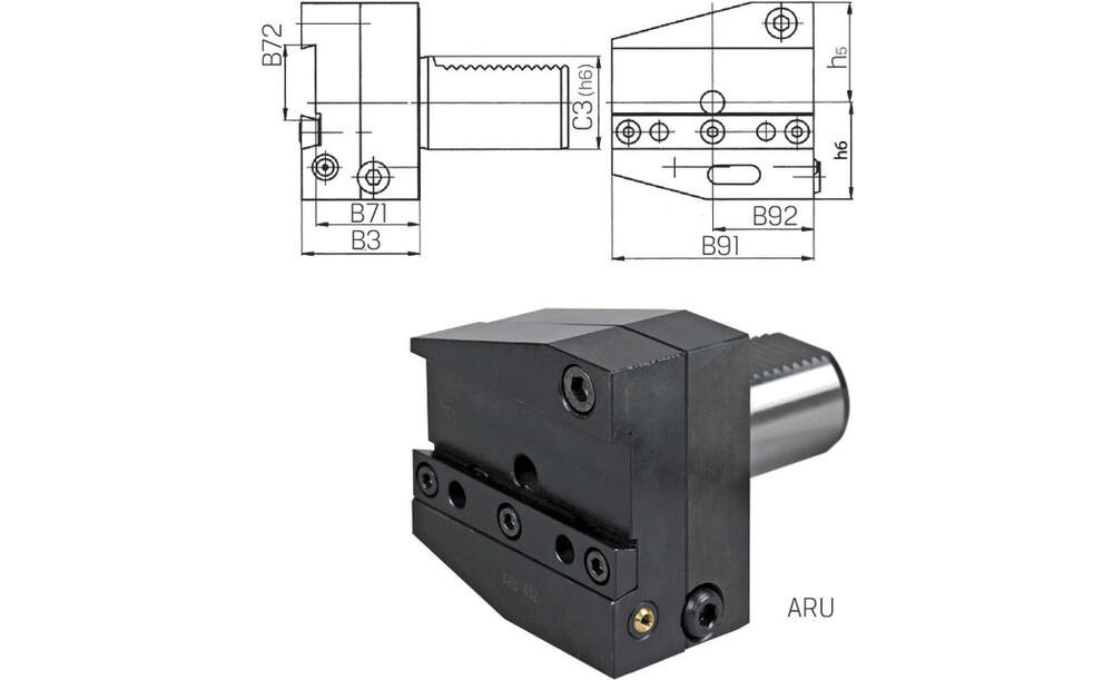 Werkzeughalter PRETEC, höhenverstellbar, überkopf, rechts, Form ARU