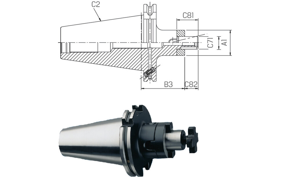 - zum Spannen von Walzenstirnfräsern DIN 841 und DIN 1880 sowie Winkelstirnfräsern DIN 842 und Messerköpfen DIN 1830