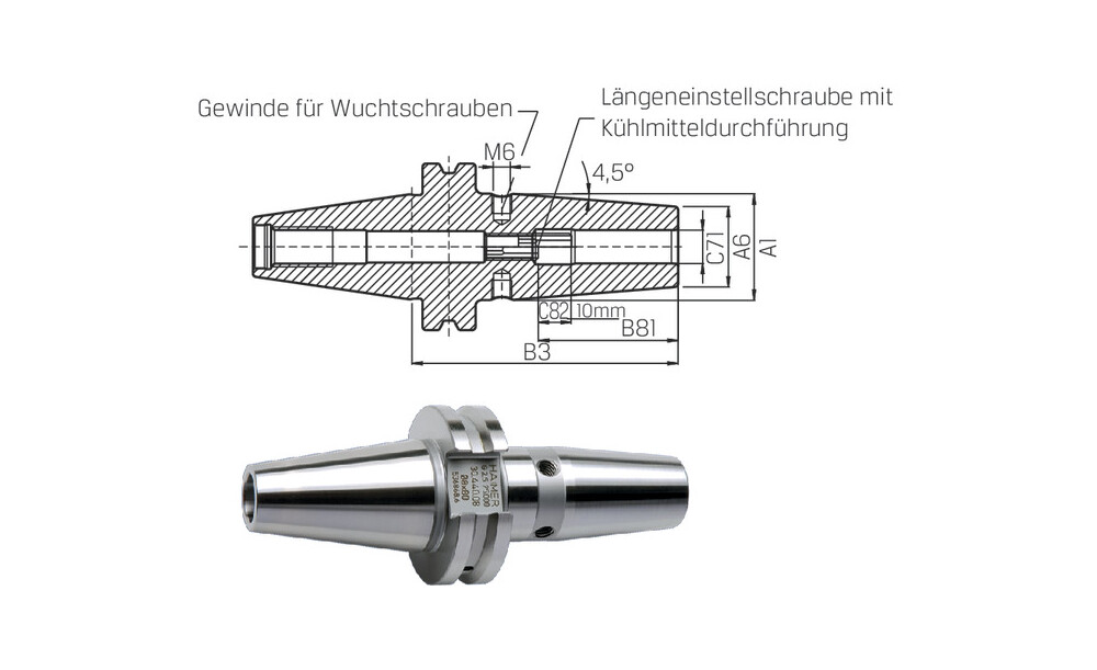 - *ohne Einstellschrauben, ohne Gewinde für Wuchtschrauben, ohne Schlitzen in der Spannbohrung für Kühlmittelzufuhr