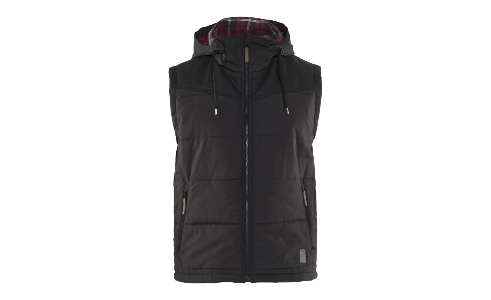 Gefütterte Winterweste mit Kapuze, perfekt für die Übergangszeit. Die Weste besteht aus einem leichten, weichen Material und besitzt CORDURA® Denim Verstärkungen an den Schultern, einen Reißverschluss vorne und eine abnehmbare, ebenfalls gefütterte, Kapuze. Die Vordertaschen haben einen Reißverschluss und die Innentaschen haben eine Handytasche inkludiert. Der Rücken ist lang geschnitten, um den empfindlichen Lendenbereich zu schützen.