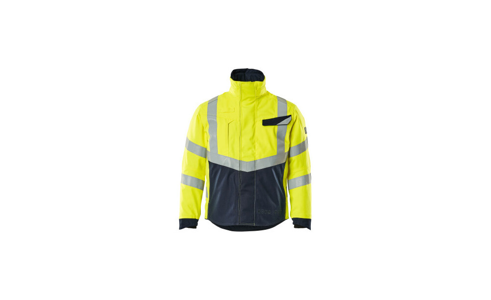 Zweifarbig. Fluoreszierend und mit Reflexschulterstreifen sowie schrägverlaufenden Reflexen. Schmutzabweisend. Antistatisch, flammhemmend und mit Säureschutz. Schützt bei Lichtbögen und bei gelegentlichem Schweißen. Atmungsaktiv, wind- und wasserdicht. Nähte sindverklebt. Futter aus Stepp. Stehkragen. Verschluss mit Reißverschluss, doppelter Wetterschutzleiste und verdeckten Druckknöpfen. Gurtband für einen Gasalarm. Tasche mit Reißverschluss unter der Wetterschutzleiste, mit Platz für ein 9,4 Zoll Tablet. Brusttasche mitReißverschluss. Brusttaschen mit Patte und verdeckten Druckknöpfen. D-Ring. Vordertaschen mit verdecktem Reißverschluss. Ergonomisch geschnittene Ärmel ermöglichen hohe Bewegungsfreiheit. Reißverschluss im Futter am Rücken zum Anbringen eines Logos/einer Stickerei. Rücken ist verlängert. Bund mit Druckknopf innen regulierbar. Rippenbündchen (verdeckt unter der Wetterschutzleiste) an den Handgelenken. Gummizug an den Handgelenken. Zertifiziert nach EN ISO 11612 (A1, A2, B1, C1, E1, F1), EN ISO 11611 - Kl. 1 (A1, A2), EN 1149-3, EN 1149-5, IEC 61482-2 Kl. 2, ATPV - 28,2 cal/cm² (getestet nach EN 61482-1-1 und EN 61482-1-2), EN 13034 + A1 (Typ 6), EN ISO 20471/A1 - Kl. 2 (XS), EN ISO 20471/A1 - Kl. 3 (S-4XL), EN 343 + A1 - Kl. 3/1 und EN 342:2017 - Kl. 3/WP (2,00 clo).