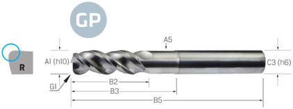 Torusfräser VHM PREMUS GP, GP, lang, Eckenradius, DLC, HB
