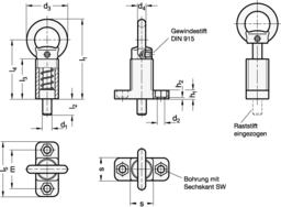 Rastbolzen, Stahl, mit Anschraubflansch, ohne Rastsperre