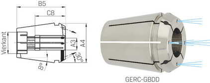- mit blauem Ring als Erkennungszeichen, keine Dichtfunktion, muss bei Einsatz im Standard-Spannzangenfutter entfernt werden