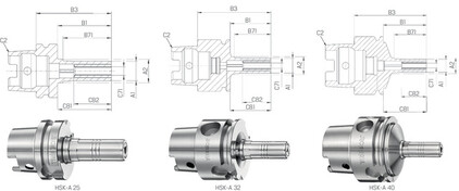 - HSK-A 32/HSK-A 40 mit Gewinde für Kühlmittelrohranschluss