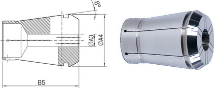 - auch für Standard-Spannzangen ER nach ISO 15488 (Achtung: Bei Verwendung mit Standard-Spannzangen wird das B3 Maß länger)