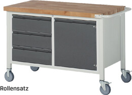 Mobile Werkbank PRETEC, Tiefe 700 mm, Gestell RAL 7035 lichtgrau / Einbauten RAL 7016 anthrazitgrau