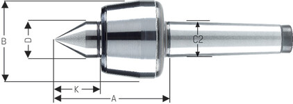 - Zentrierkegel und Aufnahmeschaft im Gesenk geschmiedet, gehärtet und geschliffen